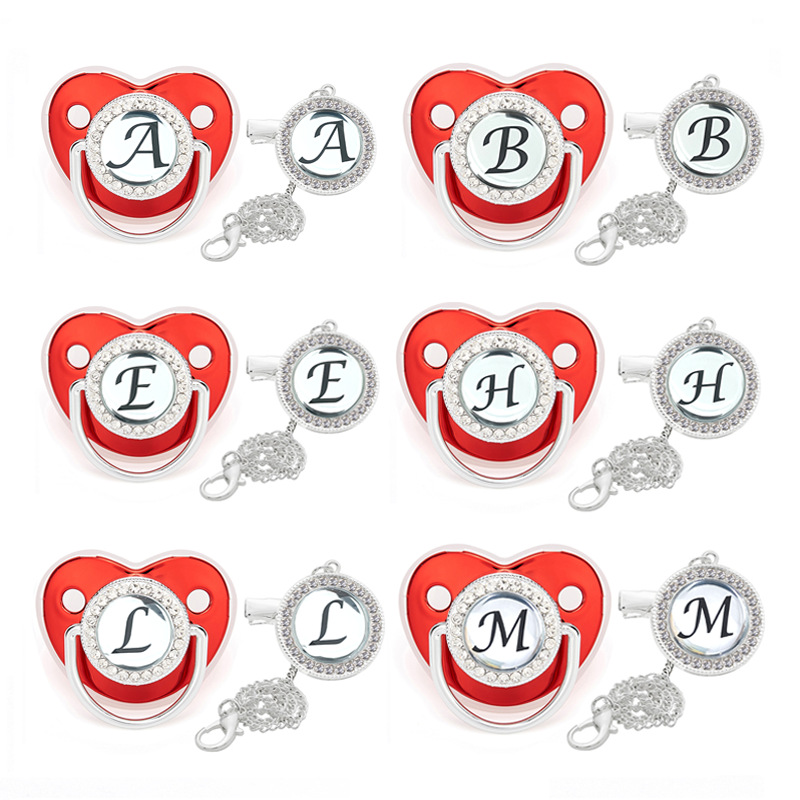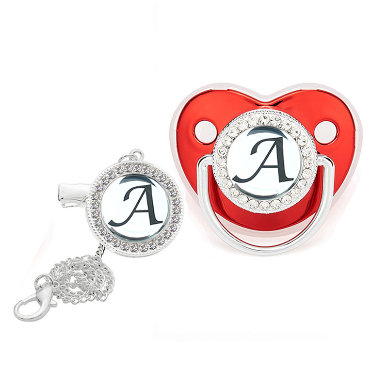 A chupeta anatômica Red Label® tem a inicial do seu bebê, dando assim um destaque sofisticado para ele com um design elegante e muito luxuoso.
