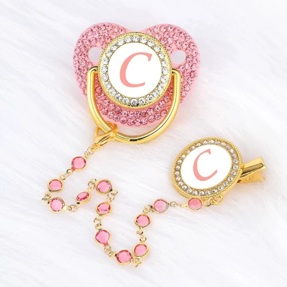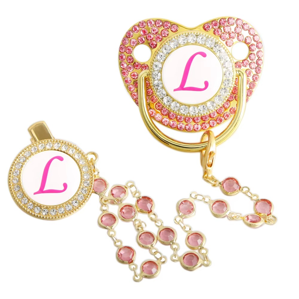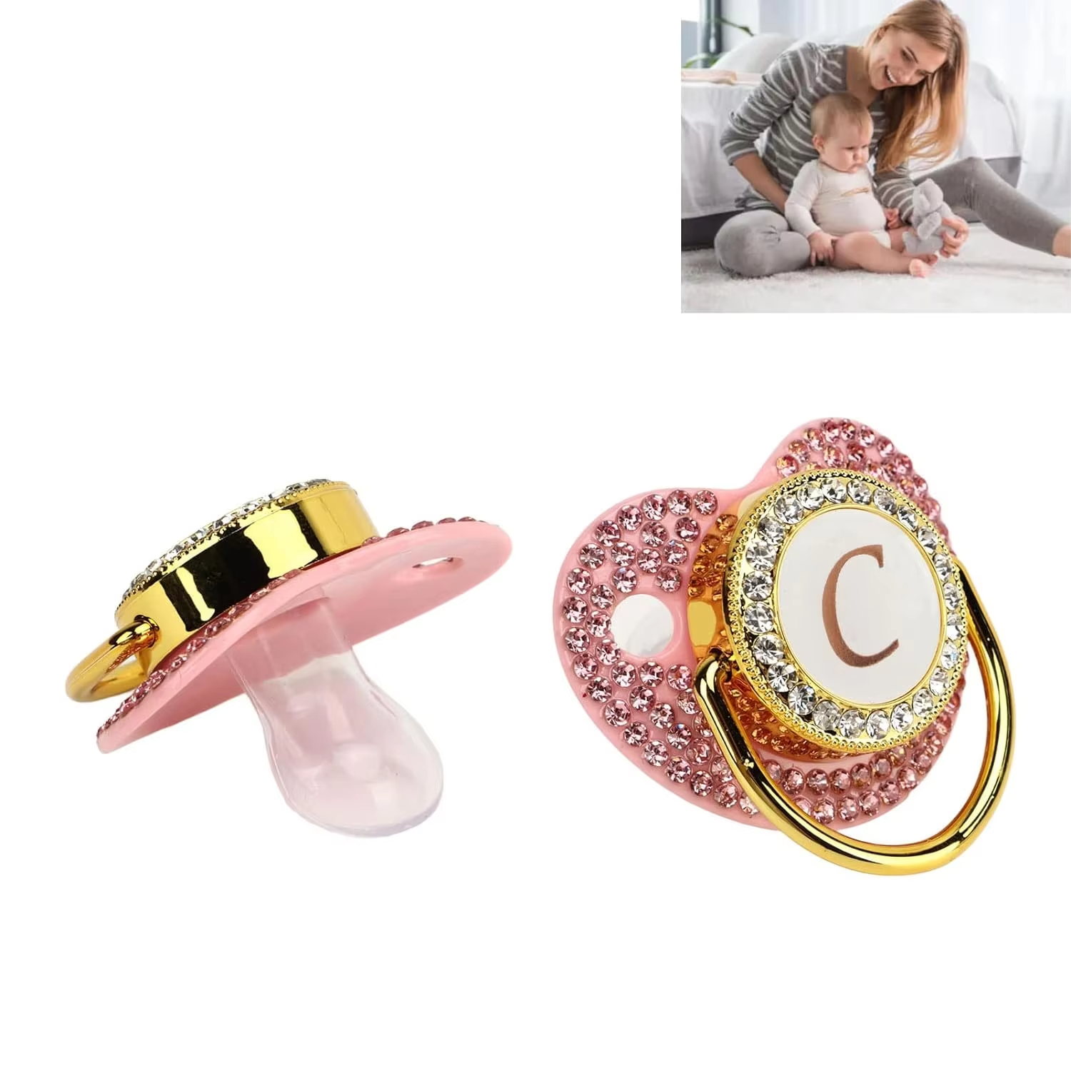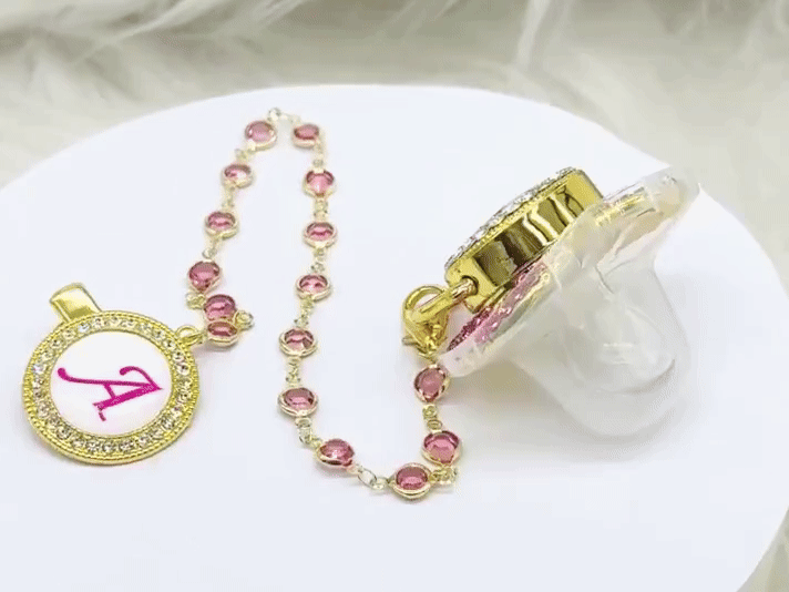 A Chupeta Anatômica Rosê - Linha Diamont® tem a inicial do seu bebê, dando assim um destaque sofisticado para ele com um design elegante e muito luxuoso.