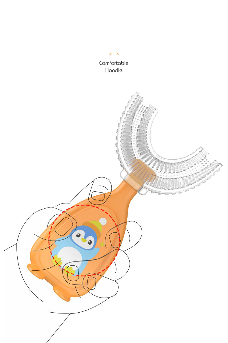 A escova pode escovar e limpar os dentes em 360 graus, especialmente projetada para dentes sensíveis de crianças;